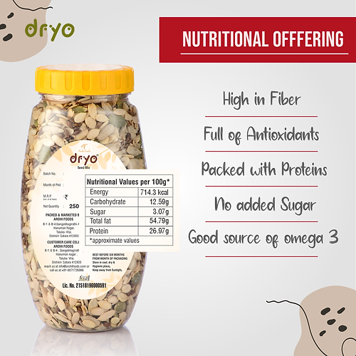 Dryo Premium Healthy Raw Seeds Mix, Roasted and Lightly Salted Pack of 3